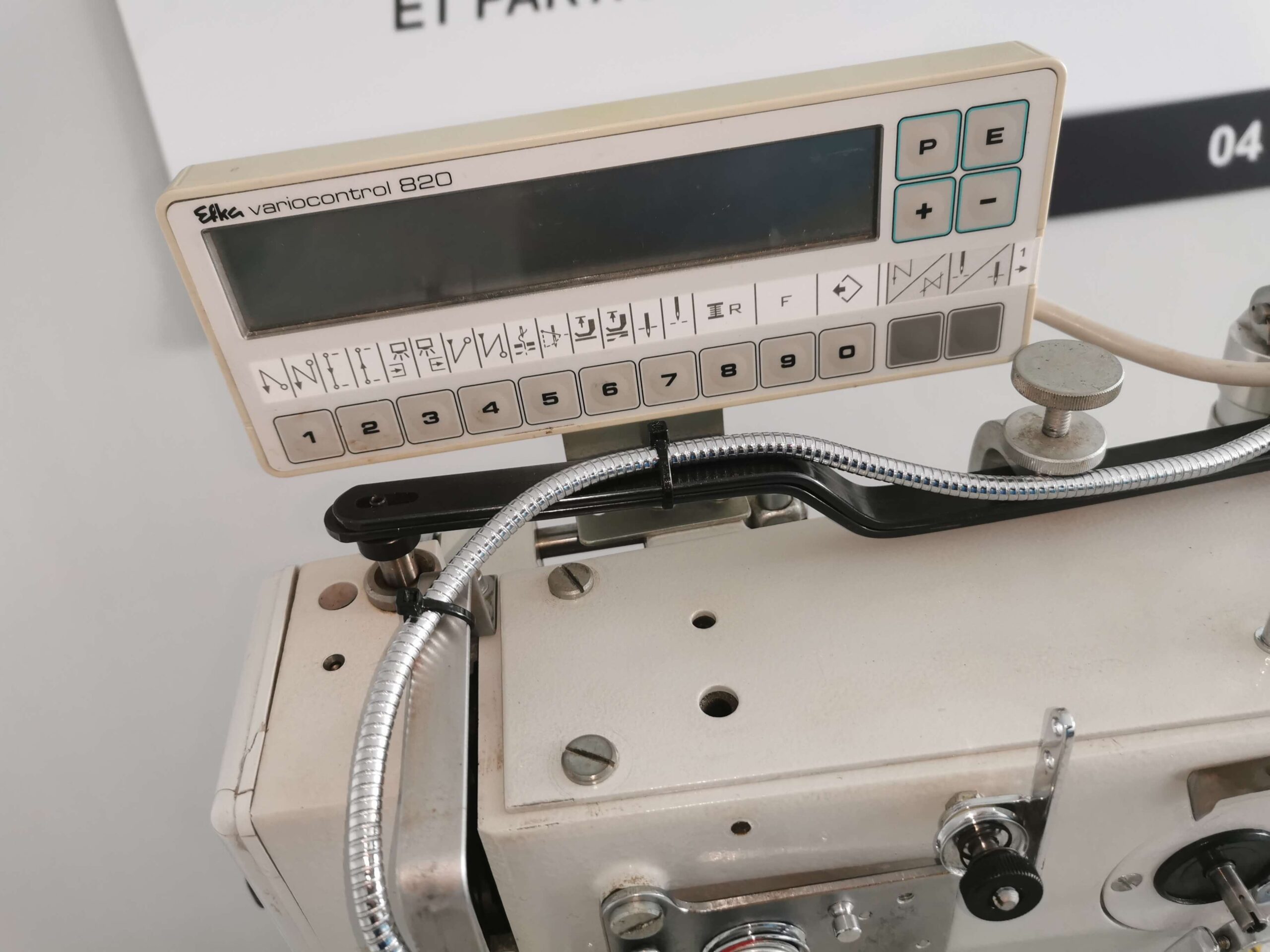 Piqueuse point noué triple entrainement par griffe, aiguille et pied alternant , configuration bras colonne (pilier haut 400mm) à droite de l’aiguille